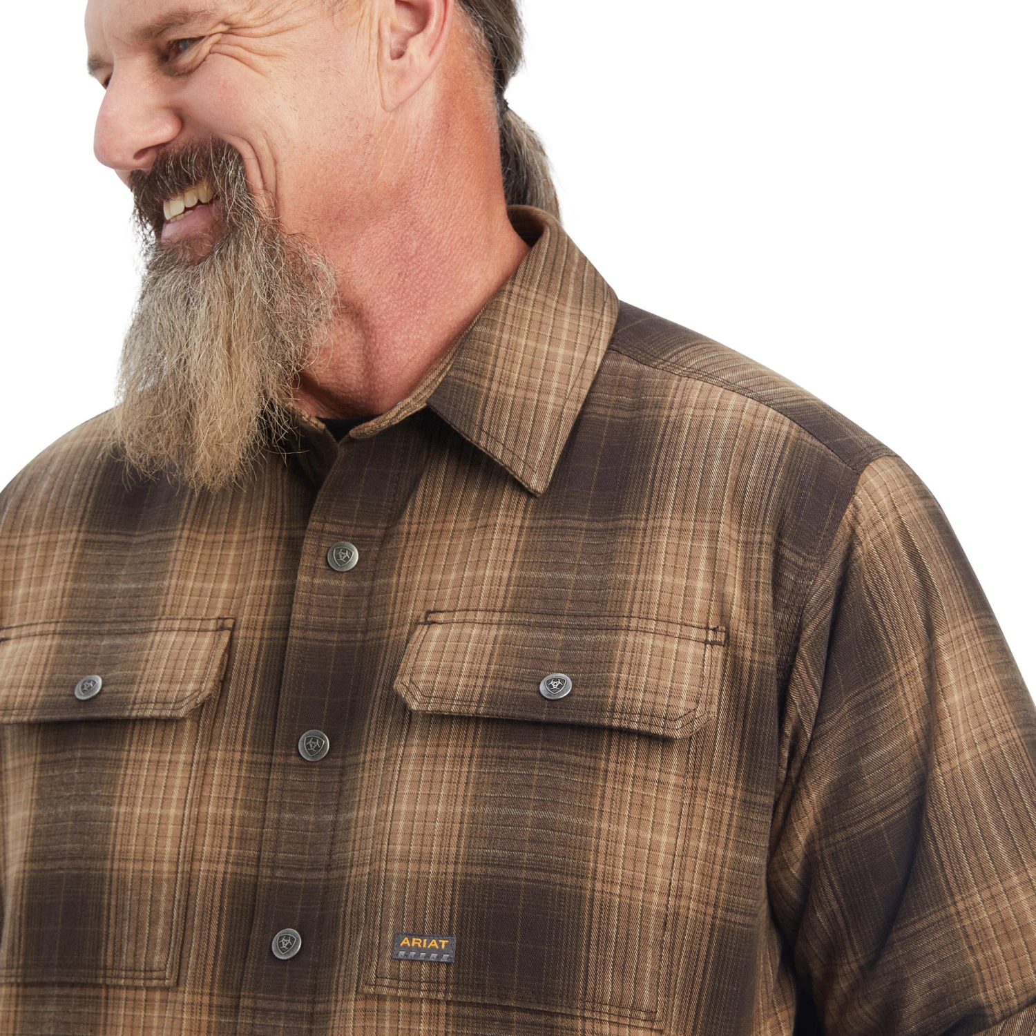 Brown Plaid DuraStretch Flannel Insulated Shirt Jacket.