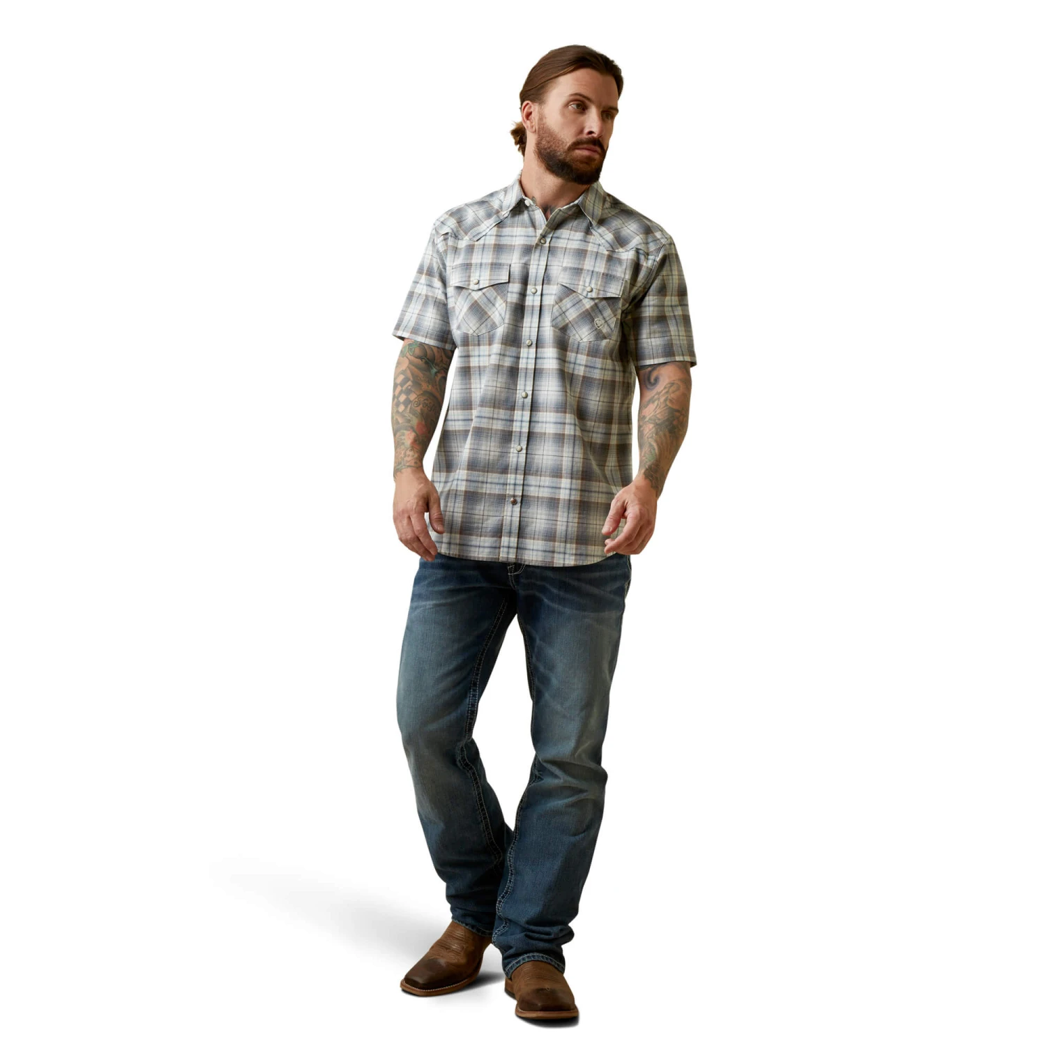 White Asparagus Plaid Short Sleeve Hargo Retro Fit Snap Front Shirt.