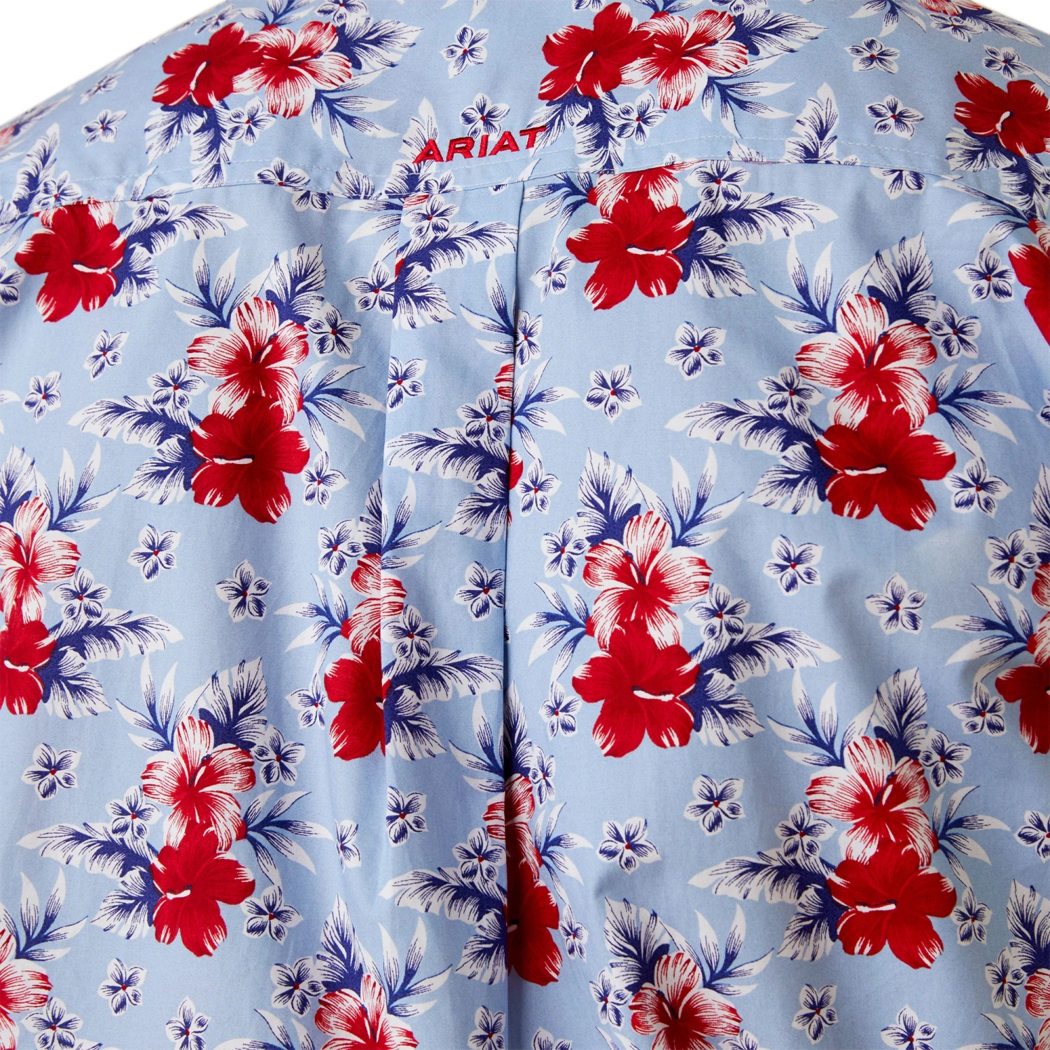 Blue and Red Hawaiian Print Short Sleeve Jeremiah Classic Fit Button Down Shirt.