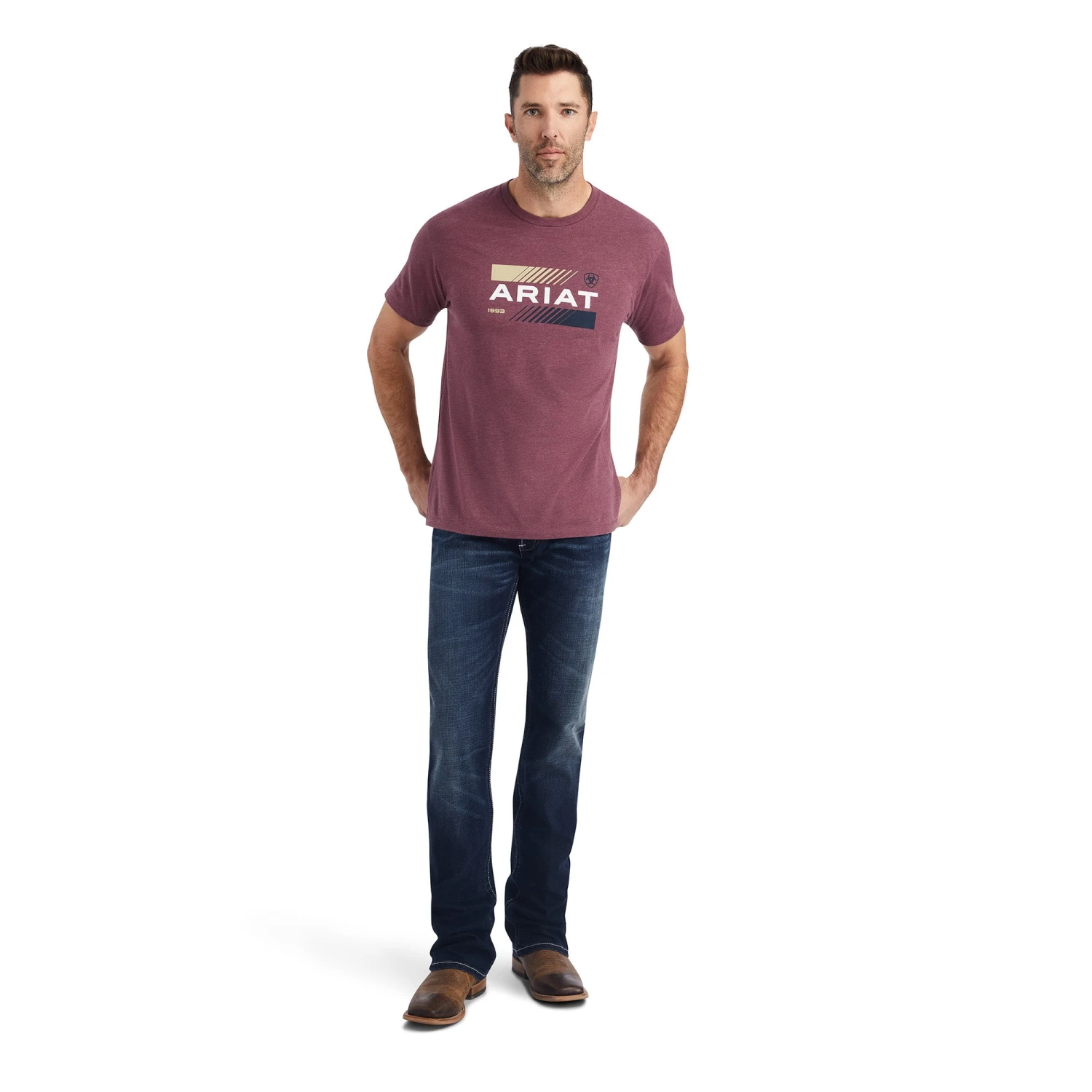 Burgundy Heather Short Sleeve Octane Stack T-Shirt.