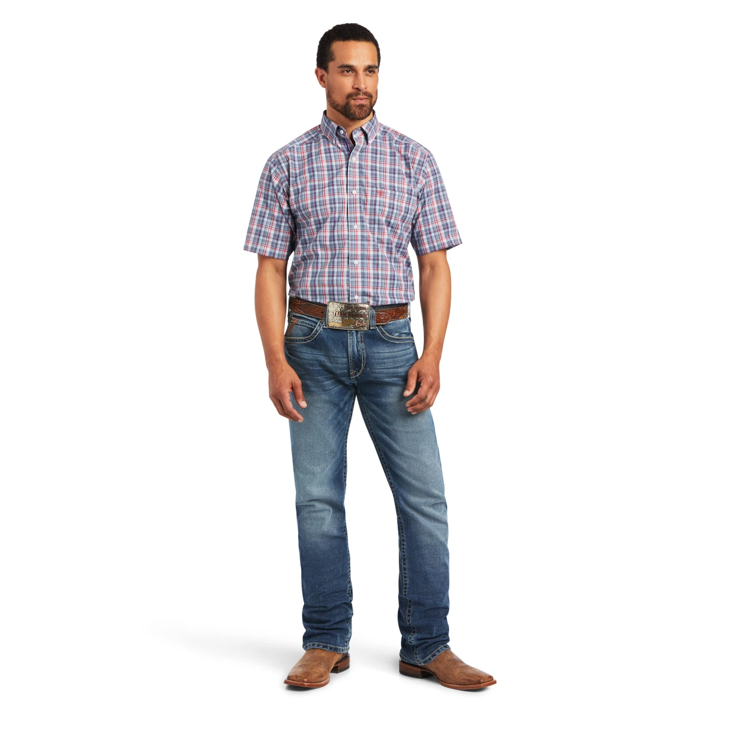 Skyfall Plaid Short Sleeve Pro Series Flint Classic Fit Button Down Shirt.