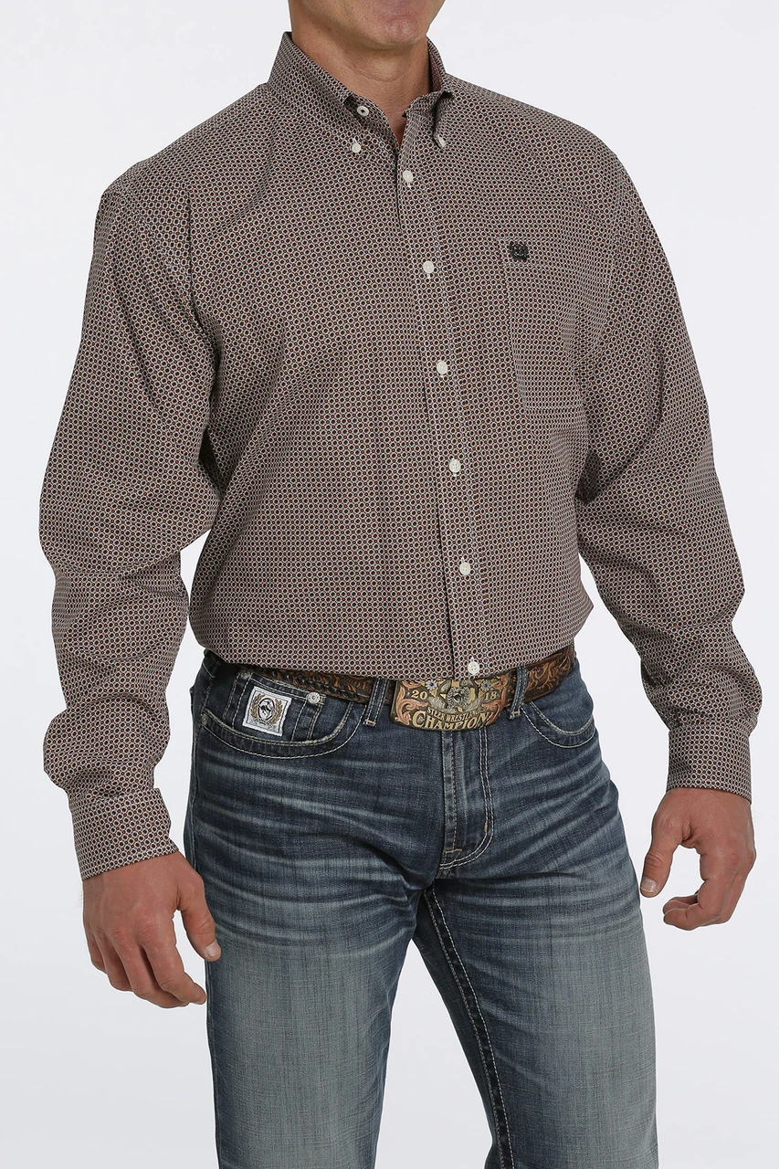 Cinch Men’s Cream Pattern Button Down Long Sleeve
