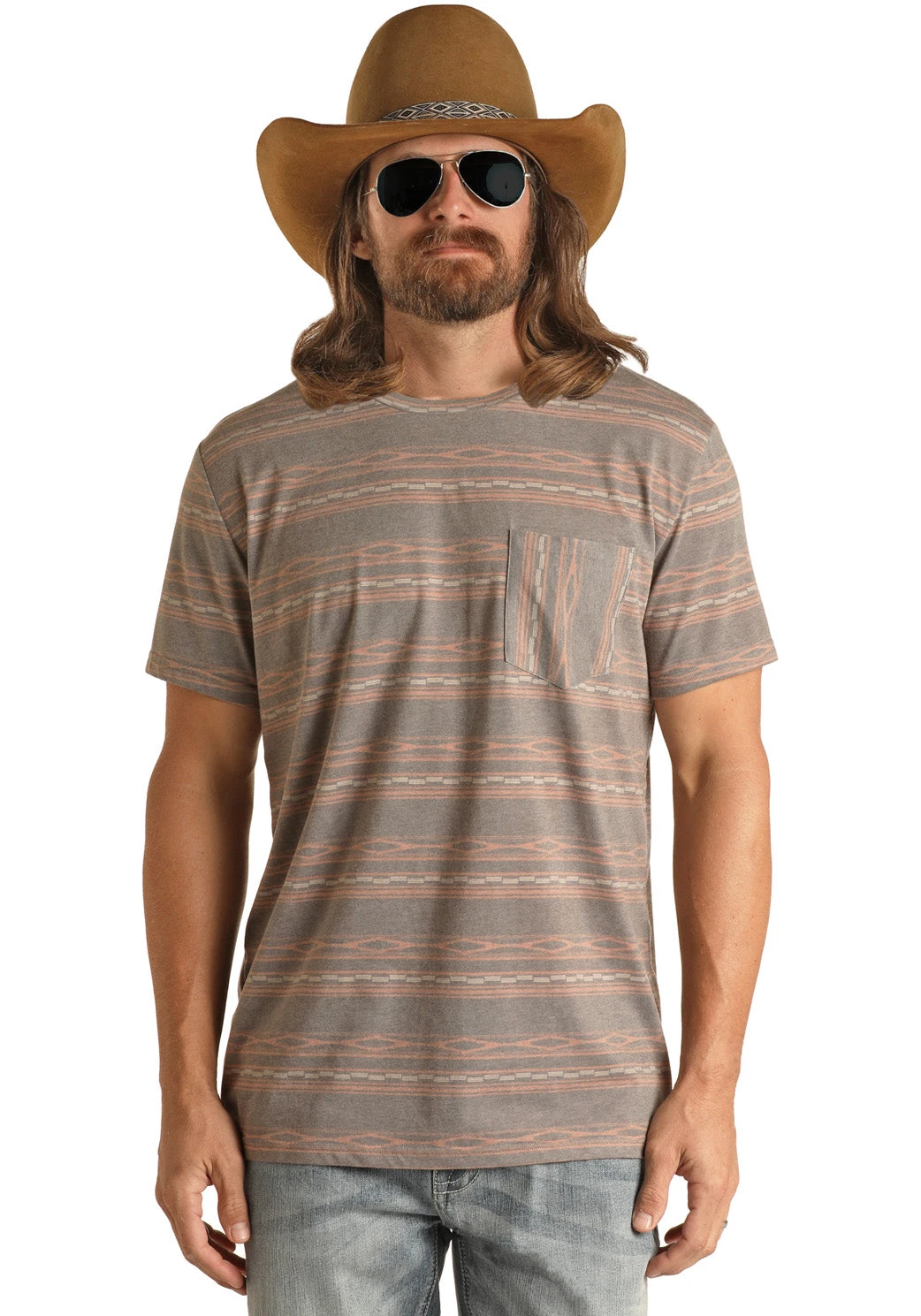 Grey and Orange Aztec Stripe Pattern Short Sleeve T-Shirt.