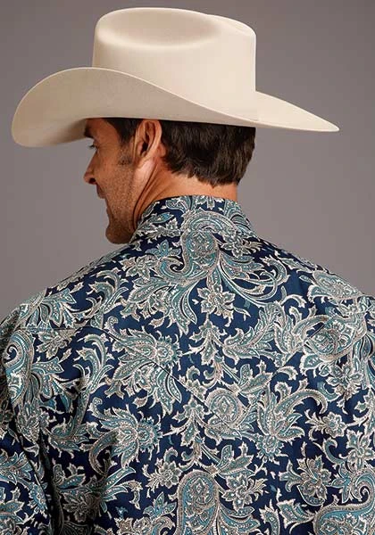Deep Marine Paisley Long Sleeve Snap Front Shirt.