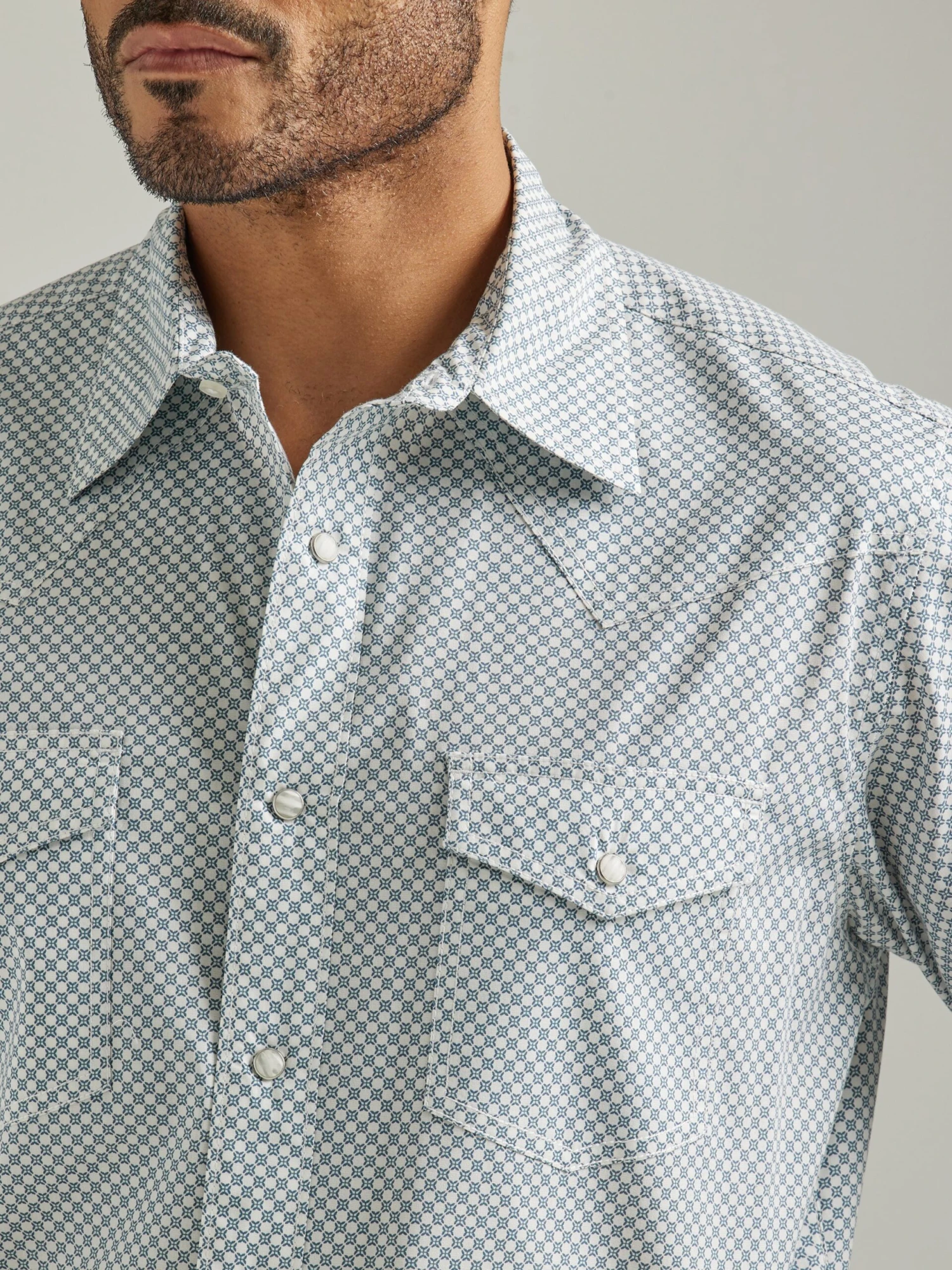 Wrangler Men’s Light Blue Geometric Pattern Button Down Shirt