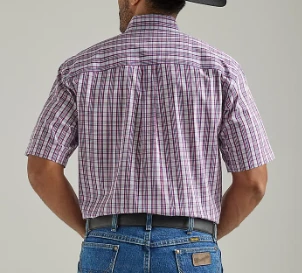 Mid Pink Plaid Short Sleeve Button Down Shirt.