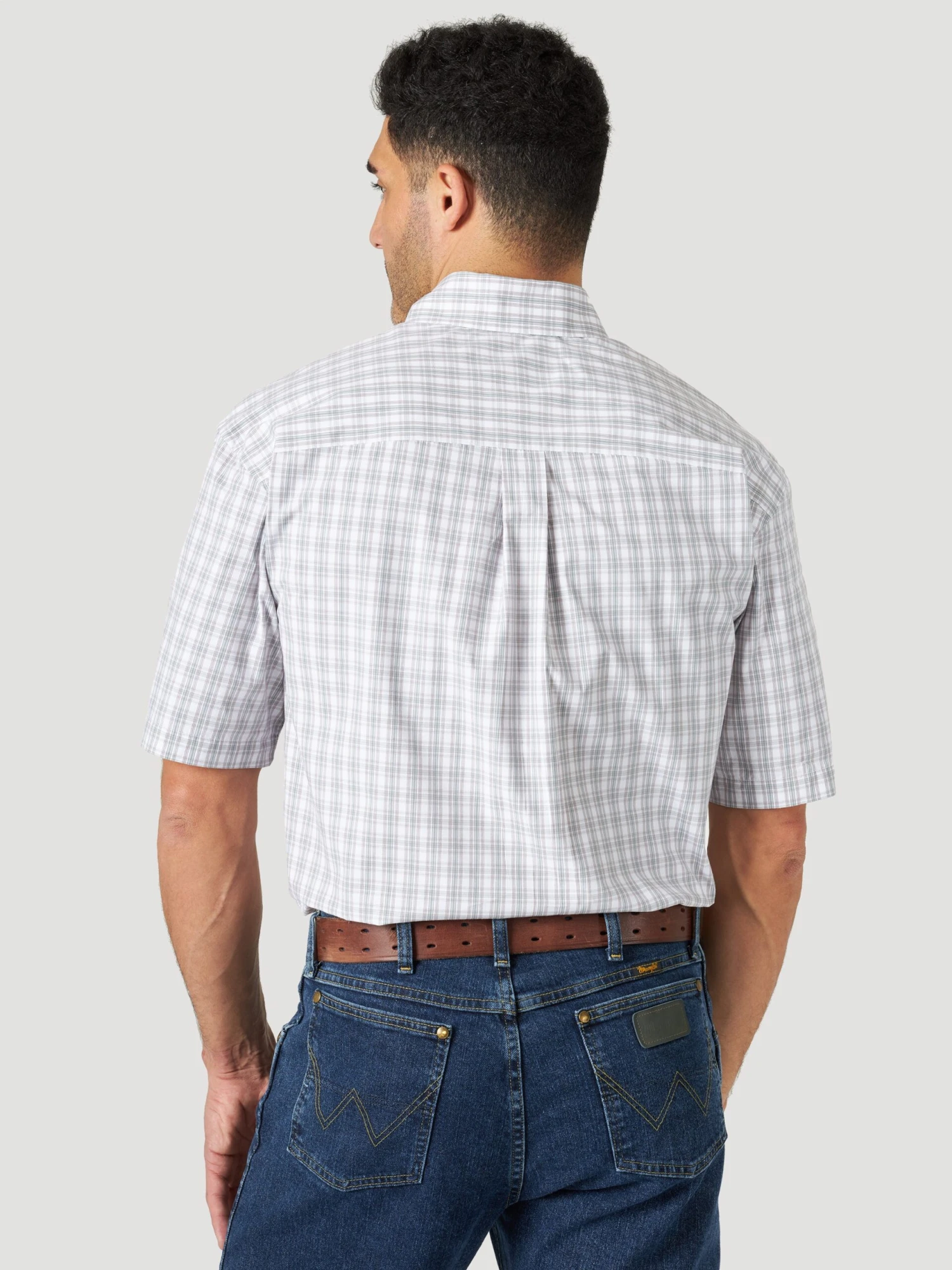 Rose Cloud Plaid Short Sleeve Button Down Shirt.