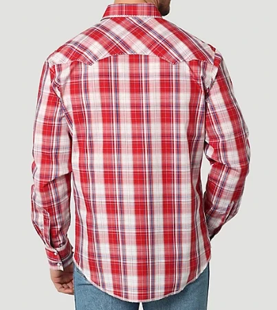 Red Plaid Long Sleeve Snap Front Shirt.