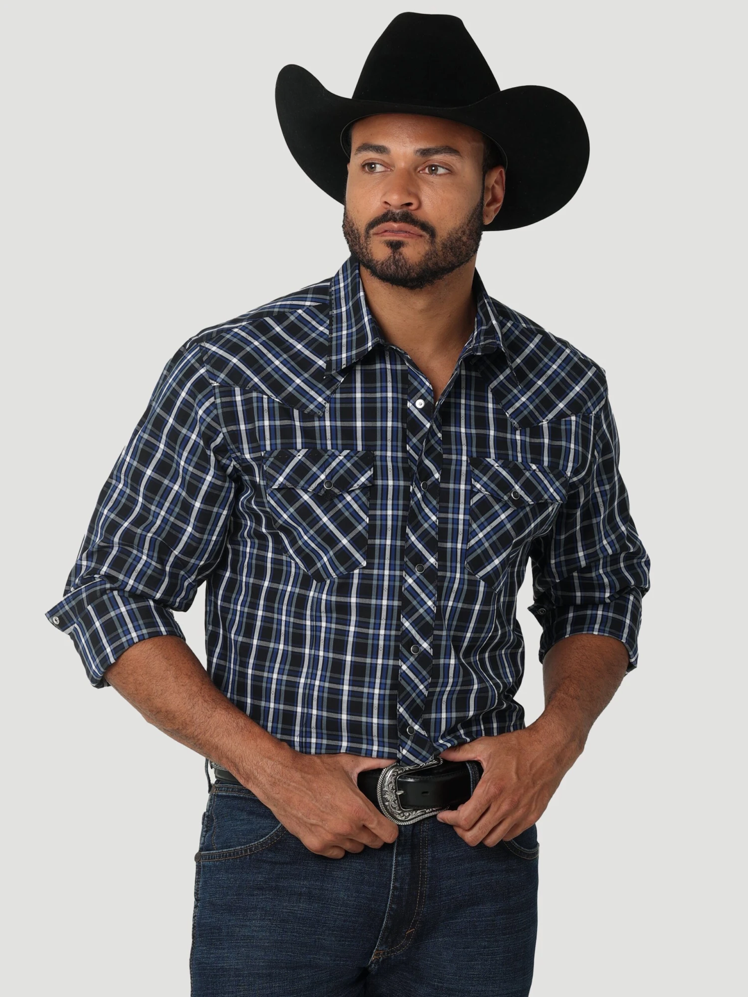 Plums Plaid Long Sleeve Snap Front Shirt.