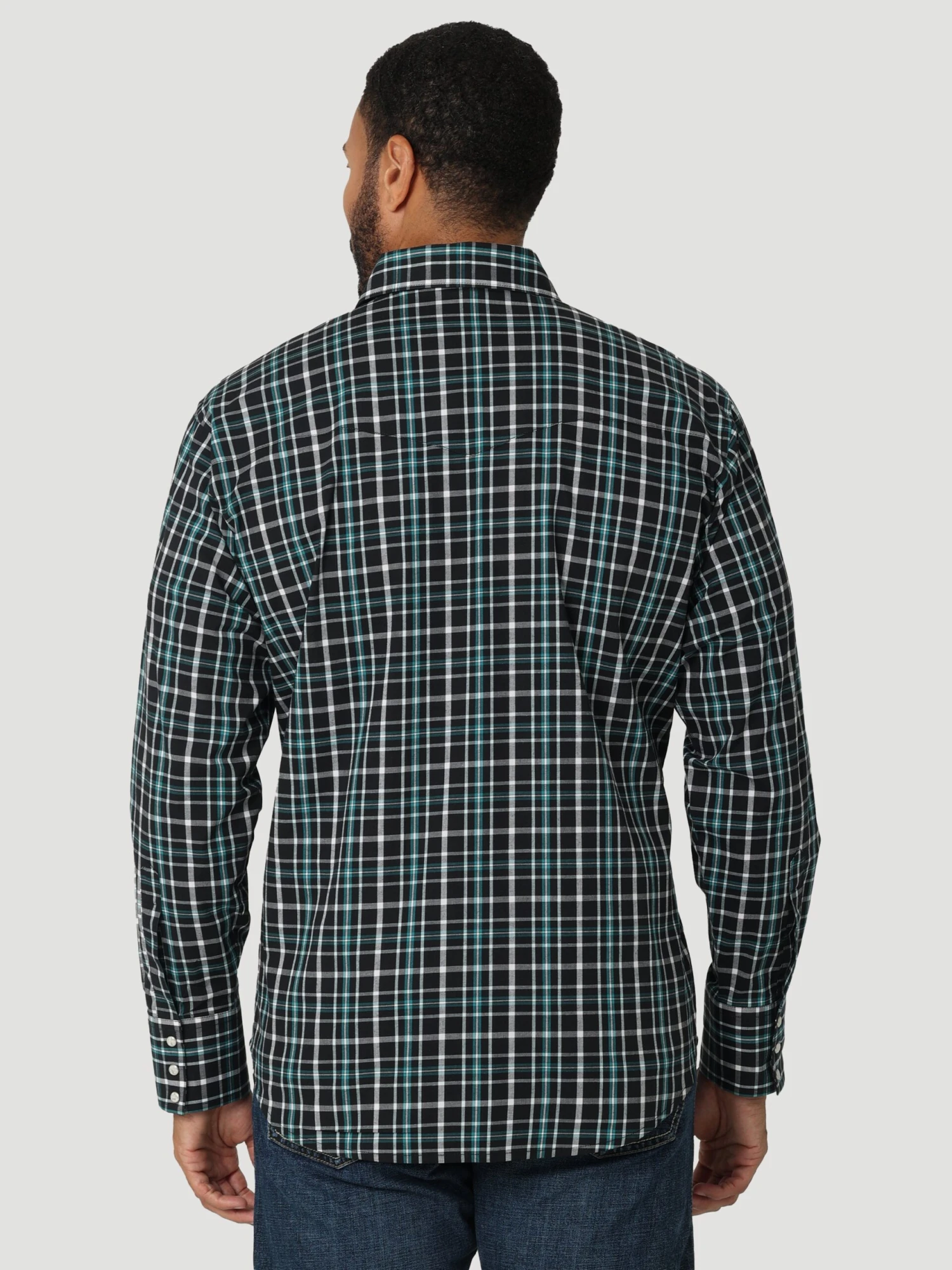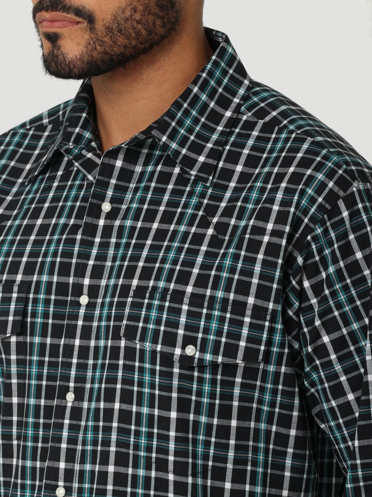 Black Pine Plaid Long Sleeve Wrinkle Resist Snap Front Shirt.