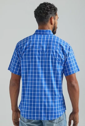 Royal Blue Plaid Short Sleeve Wrinkle Resist Snap Front Shirt.